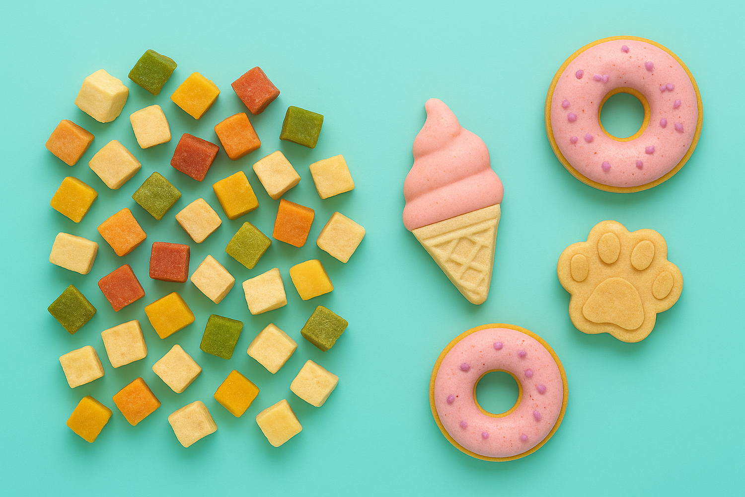 We offer handmade treats like Chicken & Cheese Florets, Corgi Cookies, and Dream Waffles—crafted for taste and pet wellness.