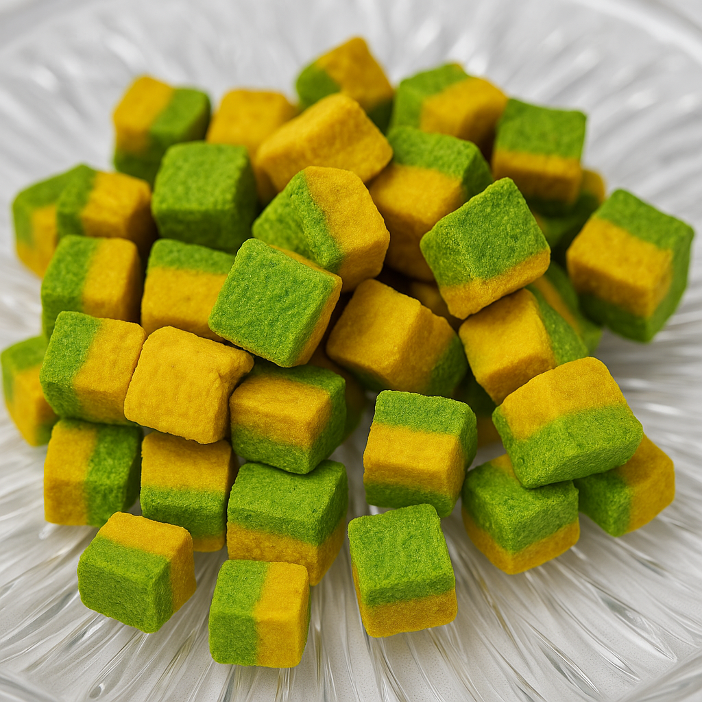 "Freeze-dried cat grass and egg yolk cubes, specially formulated to provide cats with a rich source of proteins and vitamins. Cat grass supports digestion and urinary tract health, while egg yolk offers essential nutrients for coat growth and skin health. 100% natural snack, free from artificial additives."