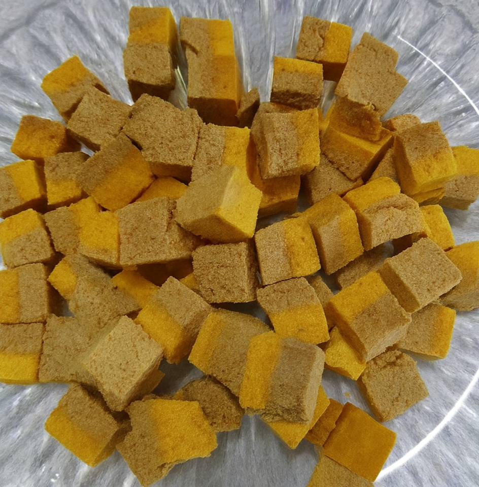 "Freeze-dried chicken egg yolk, rich in protein, vitamins, and essential fatty acids. 100% natural, no additives, perfect as a nutritious snack or food topper for pets."